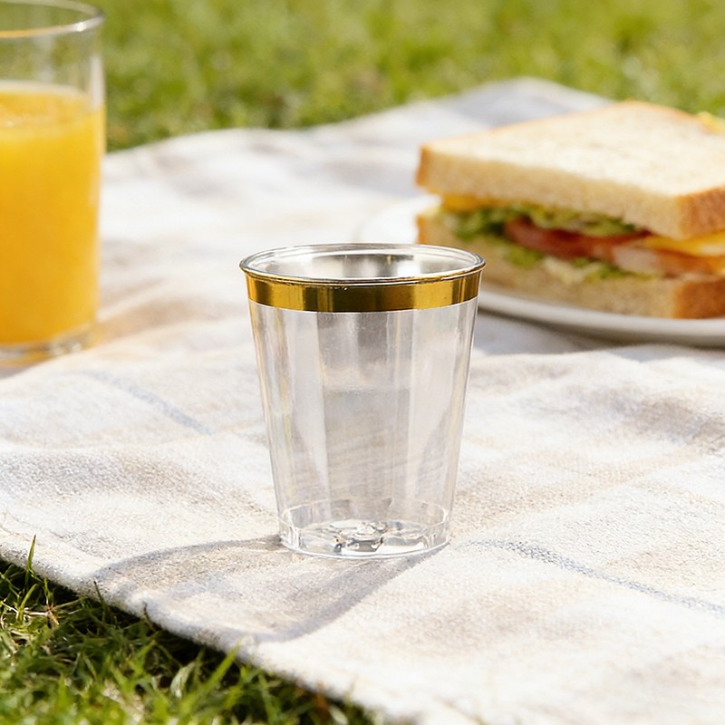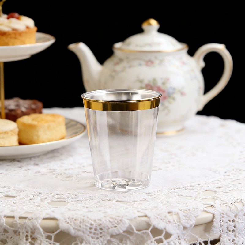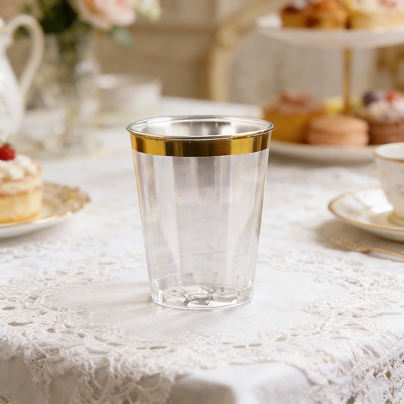 clear cup + gold rimCapacidad ideal de 10 oz:Tamaño perfecto de 10 onzas para vino, cócteles, bebidas, postres y bebidas de fiesta, adecuado para todo tipo de celebraciones.