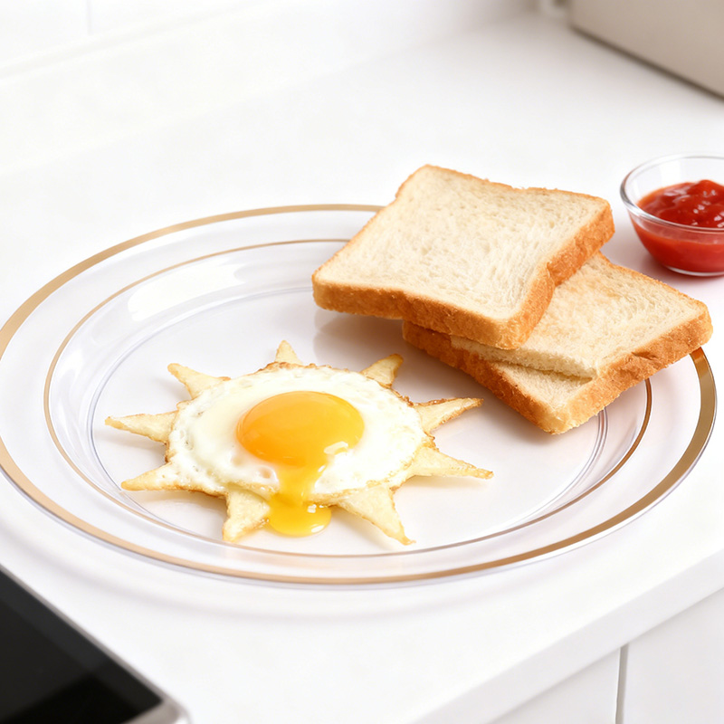 clear plate + gold rimElegante diseño con borde dorado:El elegante borde dorado en un plato transparente realza la estética del comedor y el servicio.