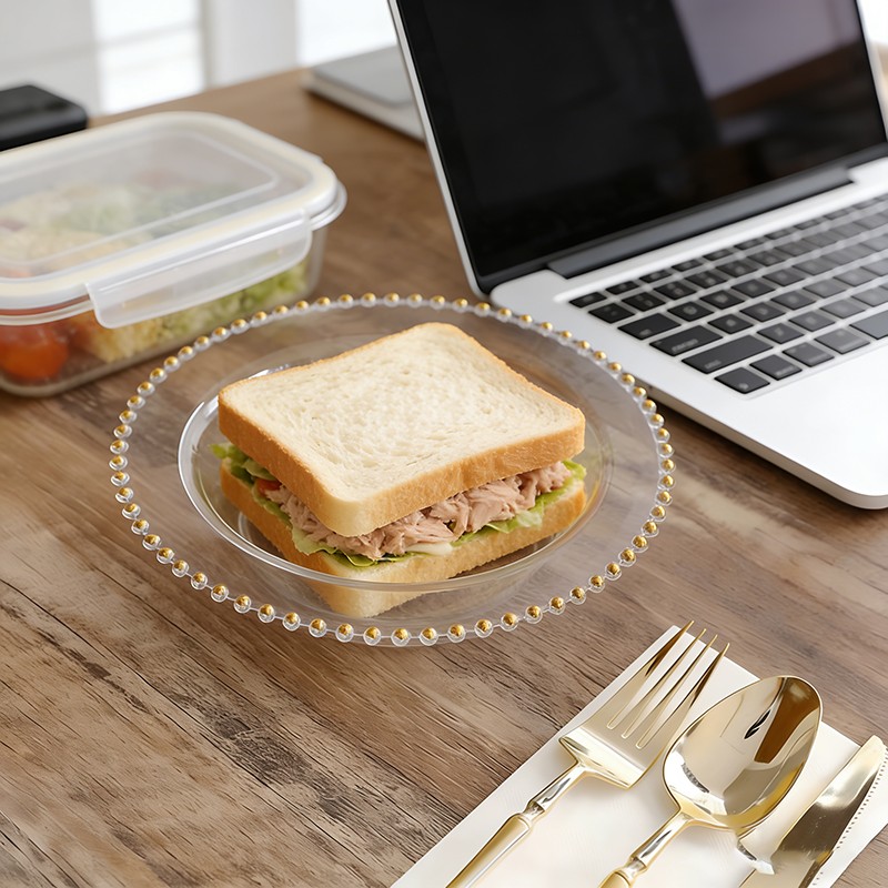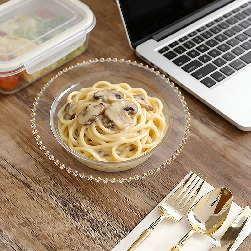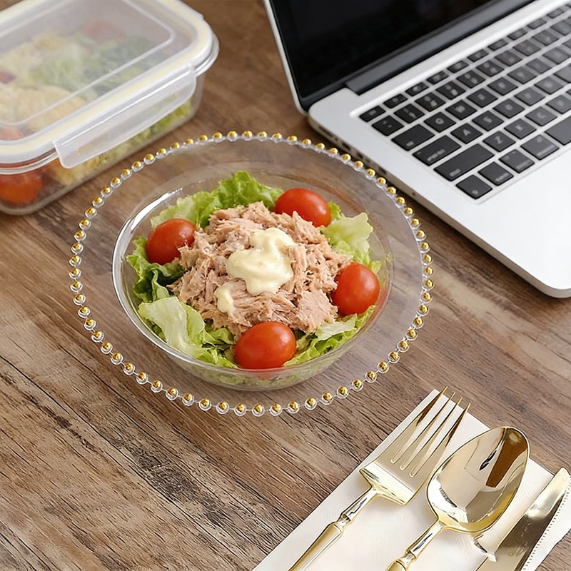 Clear bowl + gold pearl designDisposable clear plastic bowl with high transparency for better food display