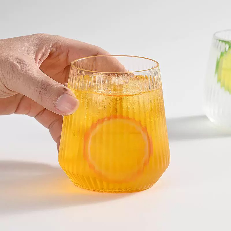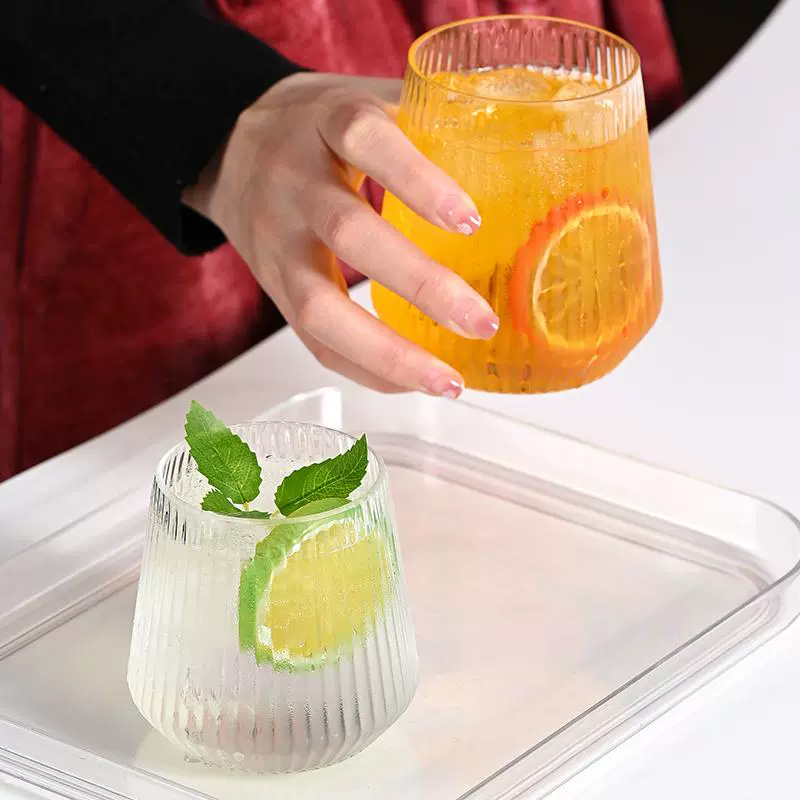 H9cm*W9cm*6.5cmDesigned for both commercial and personal use, these shatterproof plastic cups feature a trendy striped pattern and stemless design, making them ideal for wine, whiskey, cocktails, and daily beverages.