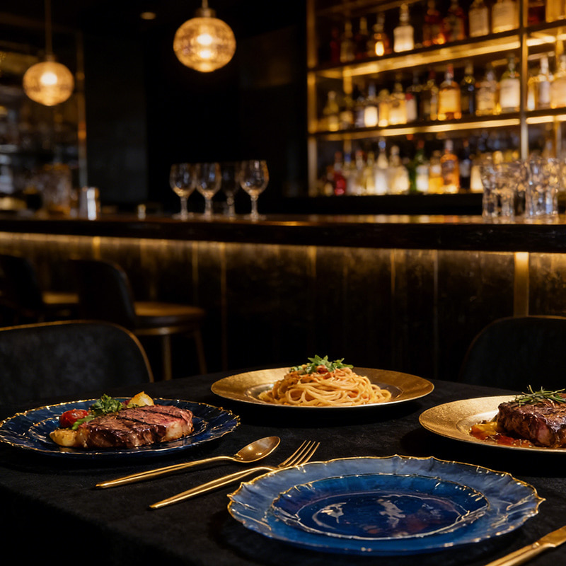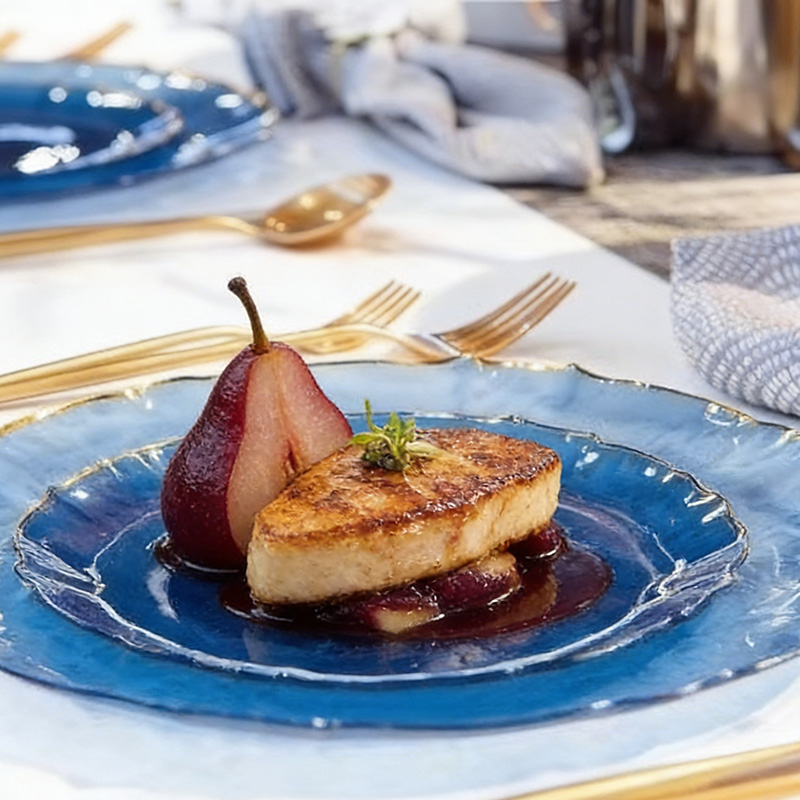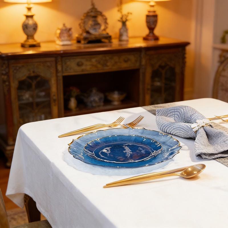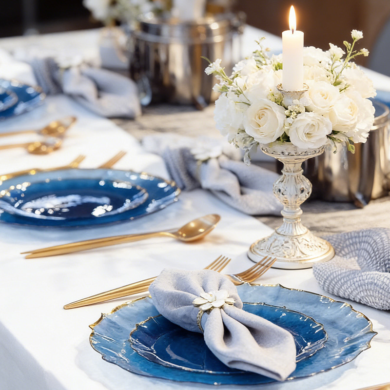 Aspecto elegante y sofisticado:El cuerpo colorido translúcido + el borde dorado brillante crean una configuración de mesa lujosa para eventos formales.