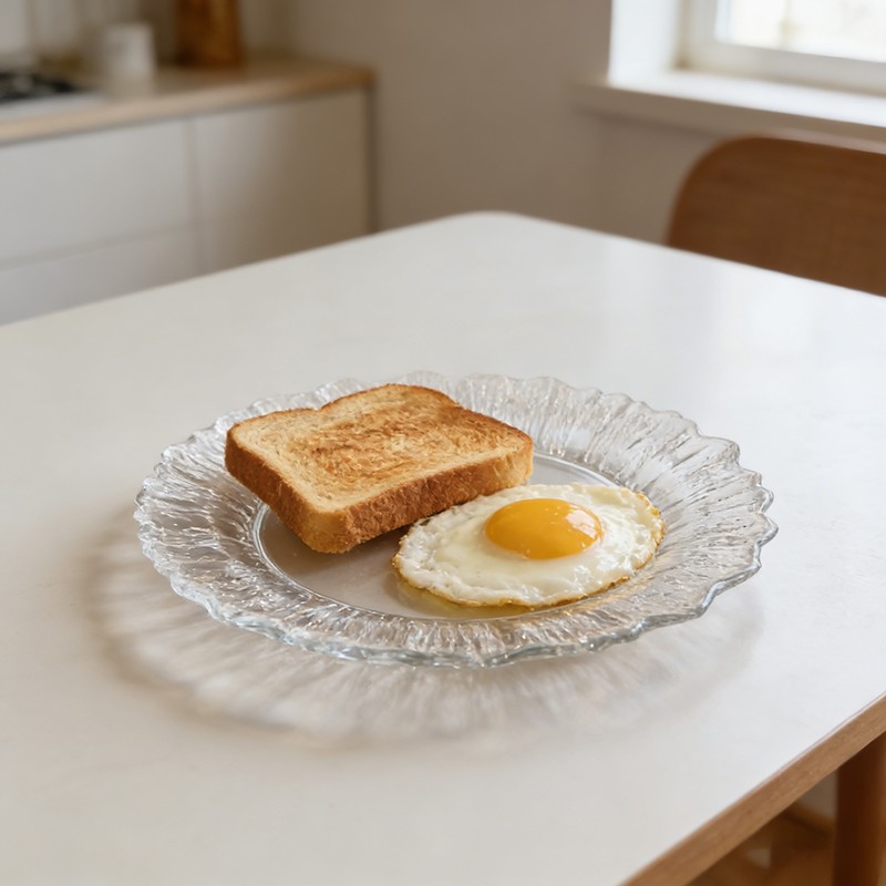 La textura martillada y el borde ondulado crean una presentación similar a la del vidrio de alta gama.